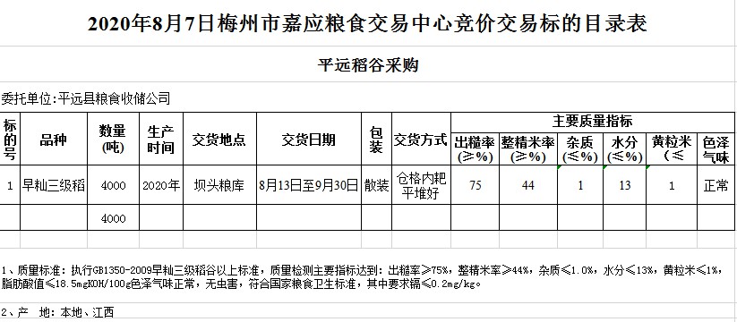 交易時(shí)間和地點(diǎn):2020年8月7日(星期五)上午10時(shí)。廣東省梅州市彬芳大道南161號(hào)梅州市糧食交易中心3樓。