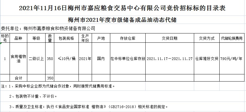 梅州市2021年度市級儲備成品糧油動態(tài)代儲及包干輪換費(fèi)用公開招投標(biāo)公告