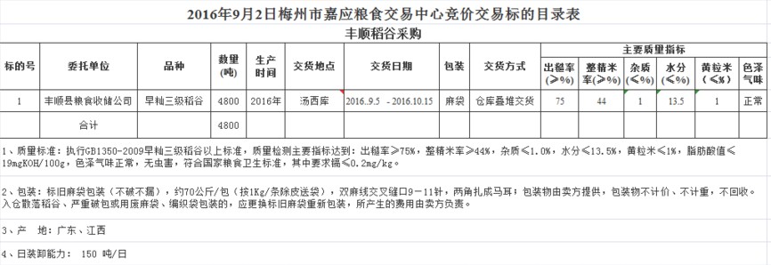 受客戶委托,豐順縣糧食收儲(chǔ)公司擬采購2016年產(chǎn)早秈三級(jí)稻谷4800噸。