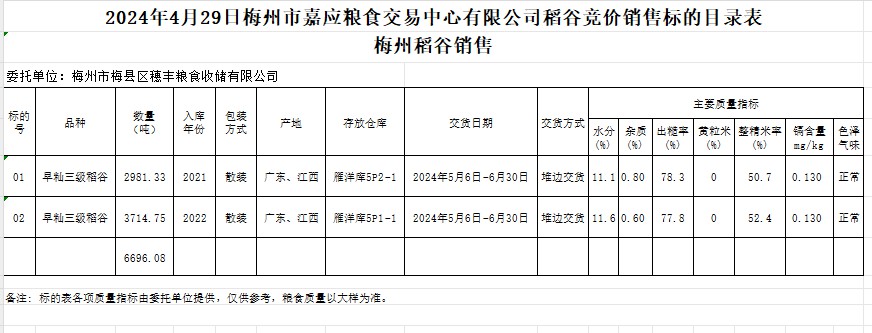 文件下載:2024年4月29日梅州市梅縣區(qū)穗豐糧食收儲有限公司稻谷銷售