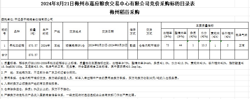三、交易資格:在梅州市嘉應(yīng)糧食交易中心有限公司成功報(bào)名并提供單位有關(guān)資料的單位。