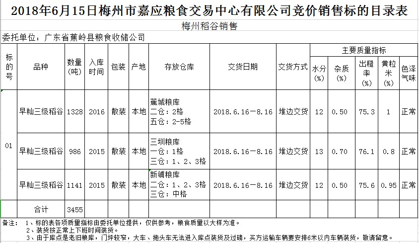 交易時(shí)間和地點(diǎn):2018年6月15日(星期五)上午10時(shí)15分。廣東省梅州市彬芳大道南161號(hào)梅州市糧食交易中心3樓。
