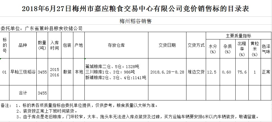 交易時(shí)間和地點(diǎn):2018年6月27日(星期三)上午10時(shí)15分。廣東省梅州市彬芳大道南161號(hào)梅州市糧食交易中心3樓。